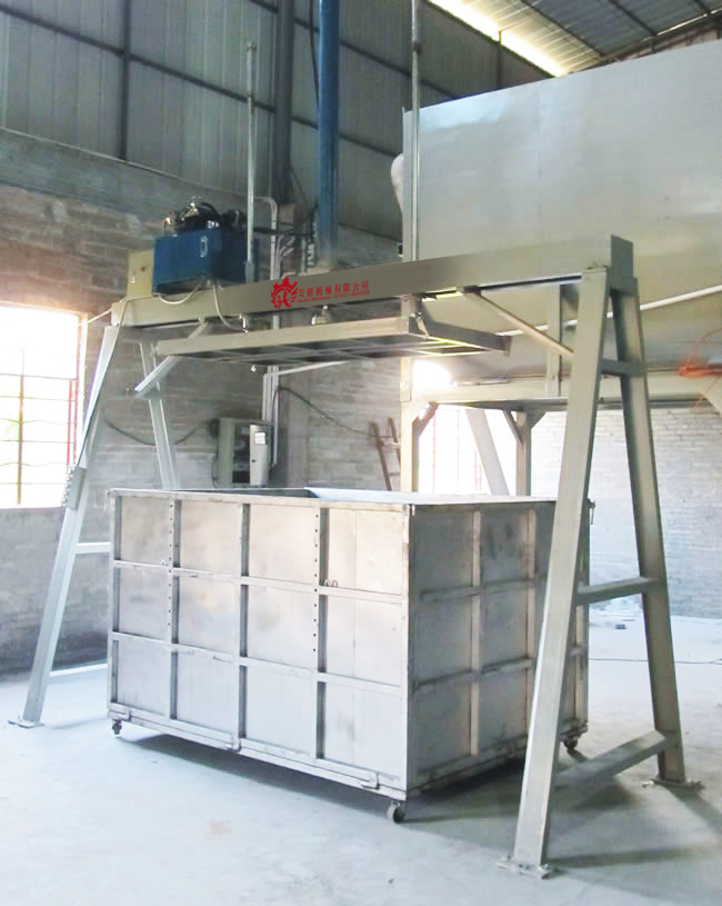 本设备与再生搅拌机配套使用,将混合均匀的碎绵在模箱内压缩成型为海绵。